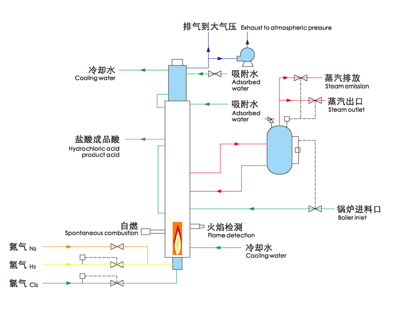 四合一盐酸合成炉与三合一盐酸合成炉都是用于生产盐酸,通过将合成段、冷却段、吸收段以及尾气吸收塔相结合。